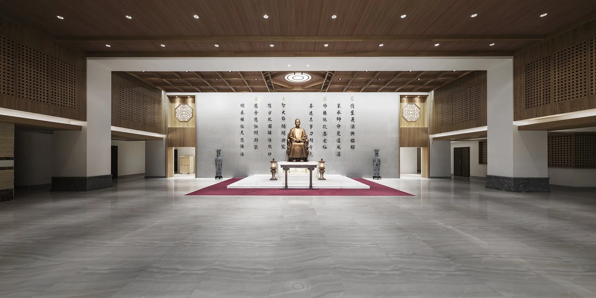 空間層次從一樓前賢殿堂,到第二層神佛大殿,最後到頂樓的萬物起源大殿。三進空間象徵一階階逐步向上求道。